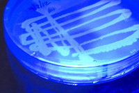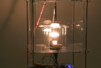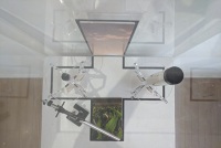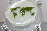 3. A webcam hanging over bioreactor provides a live view of the algae which defines the color of continents and enhances ocean color in the projections.